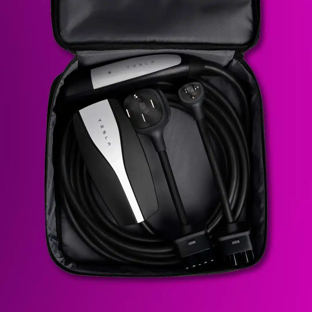 Recharge your Tesla at three miles per hour with the NEMA 5-15 adapter or up to 30 miles per hour with the NEMA 14-50 adapter, both are included in this handy mobile charging kit from Tesla.