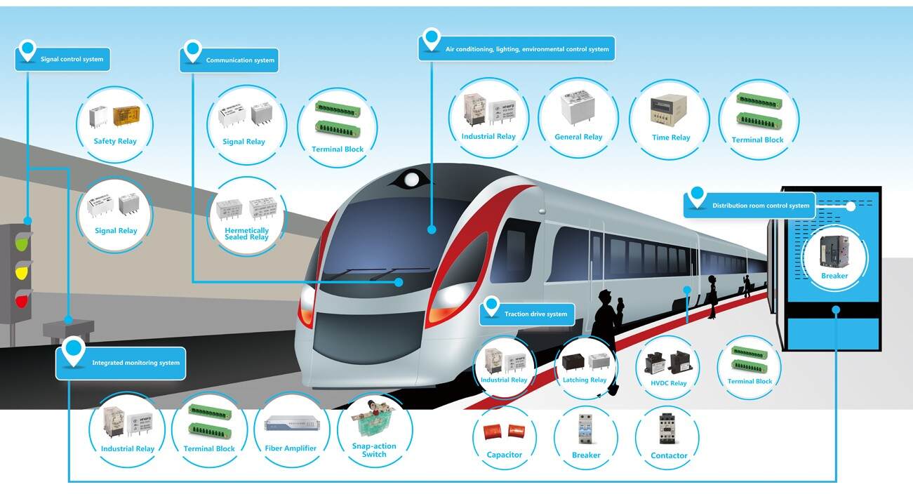 Capitalizing on the trend toward intelligent transportation, Hongfa actively develops and adapts its product series for rail transit. With their proven performance, these products are ideally suited for various systems within the field, including: signaling control, communications, HVAC & environmental control, traction drives, power distribution room control, and integrated monitoring. We provide safe, reliable, and high-performance rail transit solutions tailored to your diverse application needs.